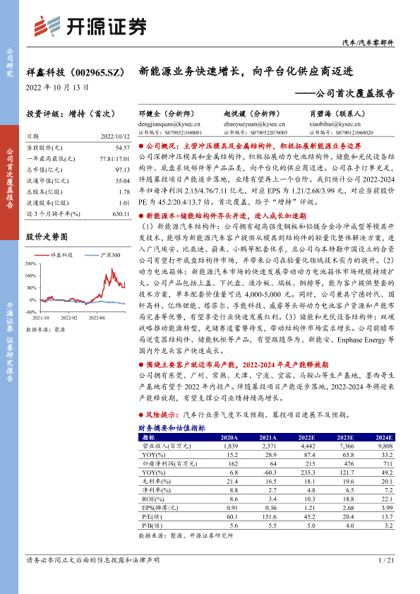 【开源证券】【20221013】祥鑫科技-公司首次覆盖报告:新能源业务快速增长,向平台化供应商迈进-21页