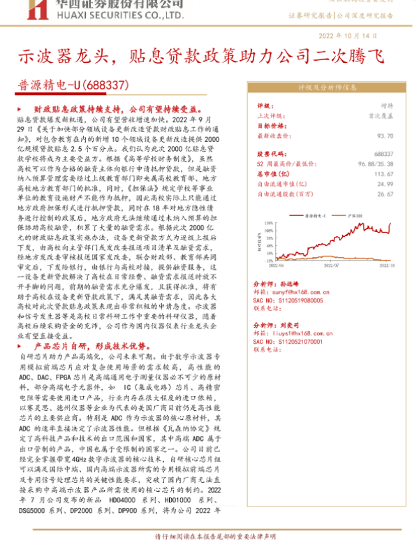 【华西证券】【20221014】示波器龙头,贴息贷款政策助力公司二次腾飞-20页