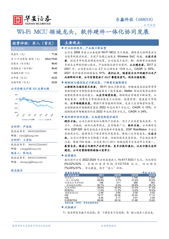 【华安证券】【20221016】Wi-Fi MCU领域龙头,软件硬件一体化协同发展-31页