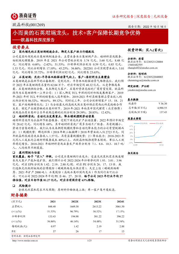 【浙商证券】【20221016】欧晶科技深度报告:小而美的石英坩埚龙头,技术+客户保障长期竞争优势-25页