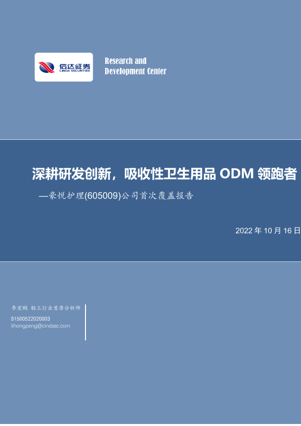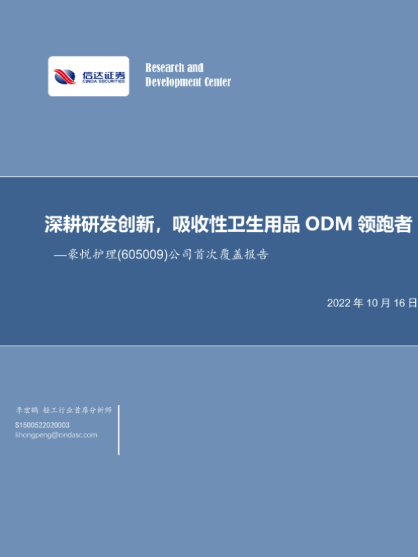 【信达证券】【20221016】深耕研发创新,吸收性卫生用品ODM领跑者-19页