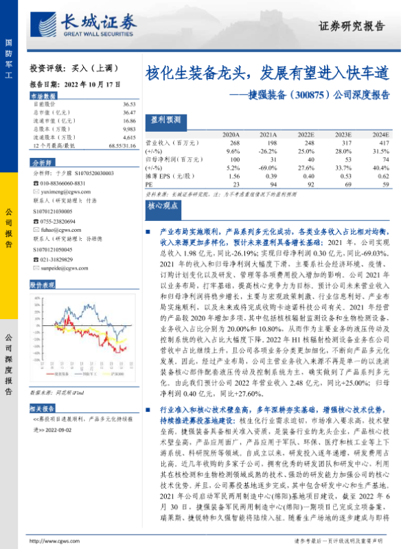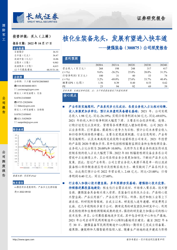 【长城证券】【20221017】20221017-长城证券-捷强装备-300875.SZ-公司深度报告:核化生装备龙头,发展有望进入快车道-33页