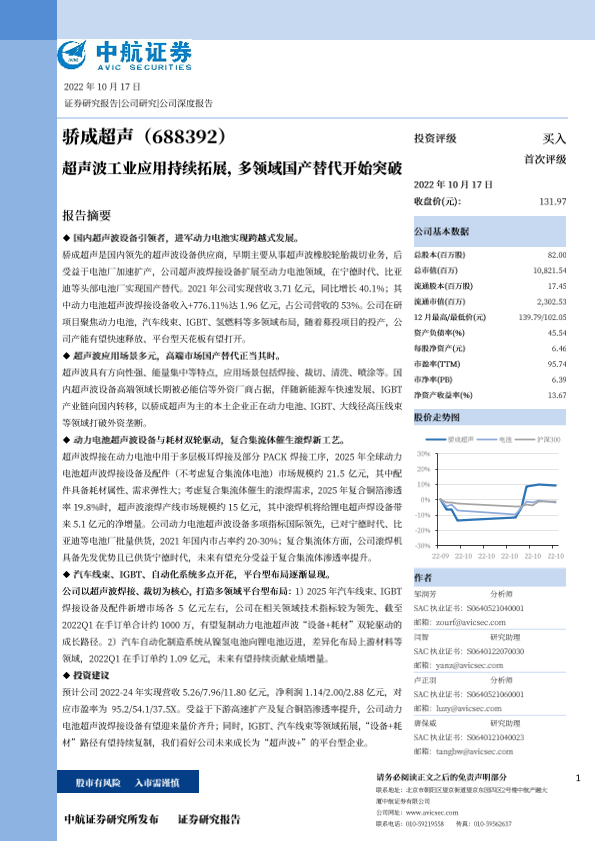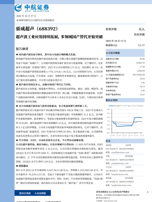 【中航证券】【20221017】20221017-中航证券-骄成超声-688392.SH-超声波工业应用持续拓展,多领域国产替代开始突破-40页