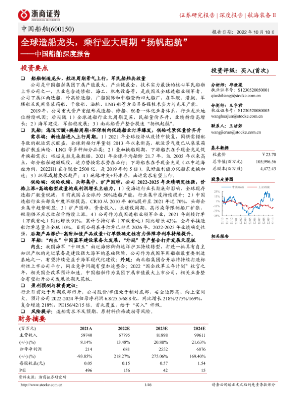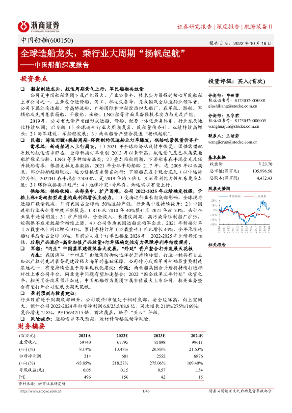 【浙商证券】【20221018】中国船舶深度报告:全球造船龙头,乘行业大周期“扬帆起航”-46页