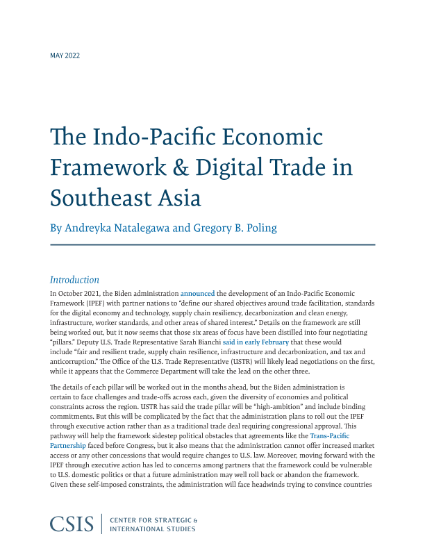 【国际战略研究中心】【202205】印度-太平洋经济框架与东南亚数字贸易-13页