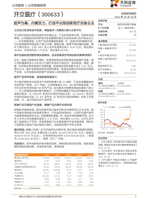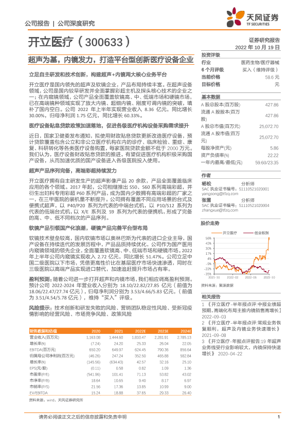 【天风证券】【20221019】开立医疗-超声为基,内镜发力,打造平台型创新医疗设备企业-38页