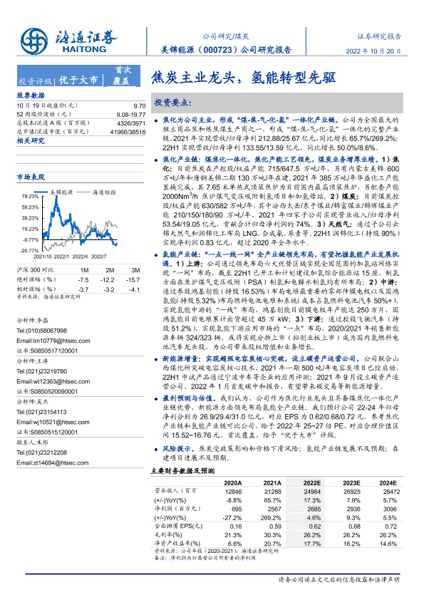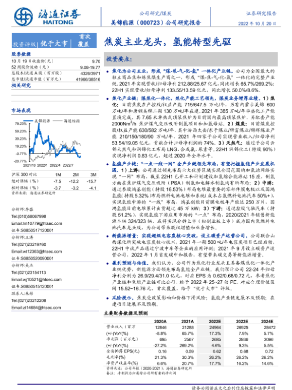 【海通证券】【20221020】美锦能源-000723.SZ-公司研究报告:焦炭主业龙头,氢能转型先驱-37页