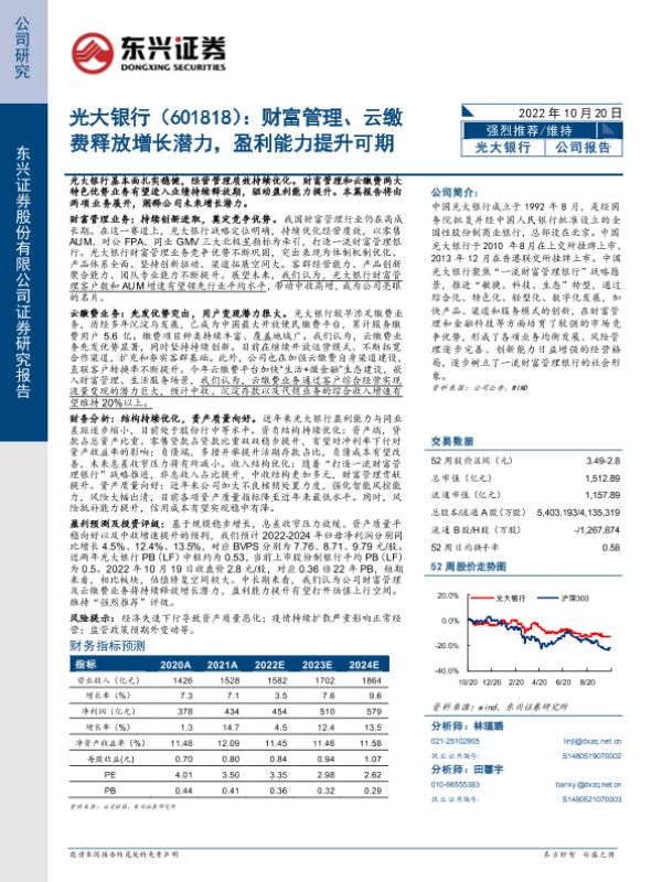 【东兴证券】【20221020】光大银行:财富管理、云缴费释放增长潜力,盈利能力提升可期-24页