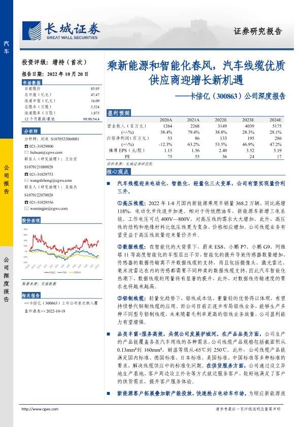 【长城证券】【20221020】20221020-长城证券-卡倍亿-300863.SZ-公司深度报告:乘新能源和智能化春风,汽车线缆优质供应商迎增长新机遇-26页