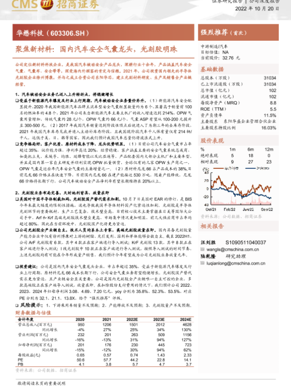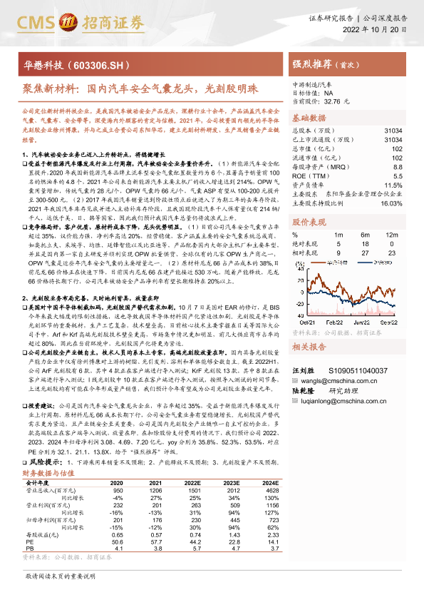 【海通证券】【20221020】聚焦新材料:国内汽车安全气囊龙头,光刻胶明珠-32页