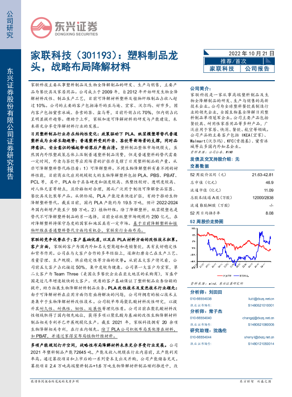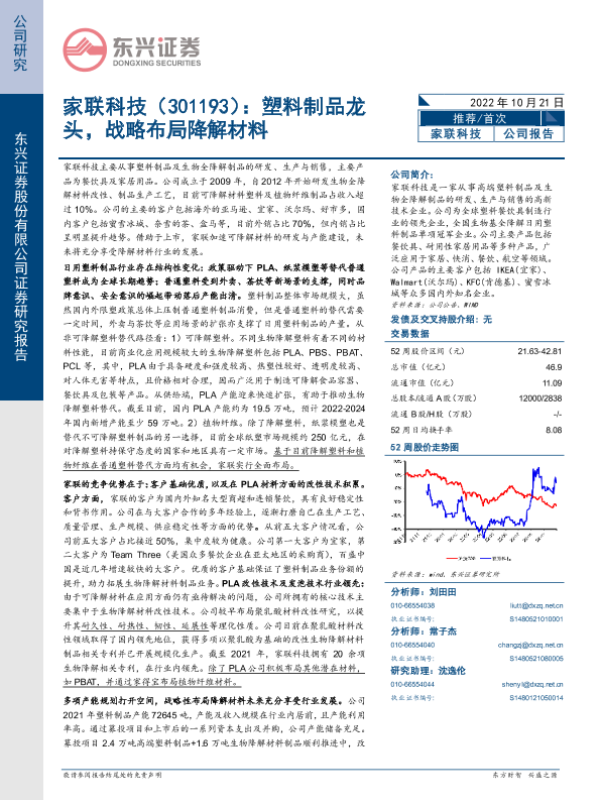 【东兴证券】【20221021】家联科技:塑料制品龙头,战略布局降解材料-33页