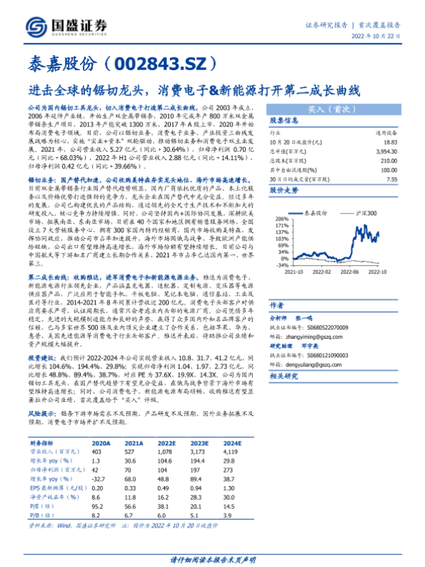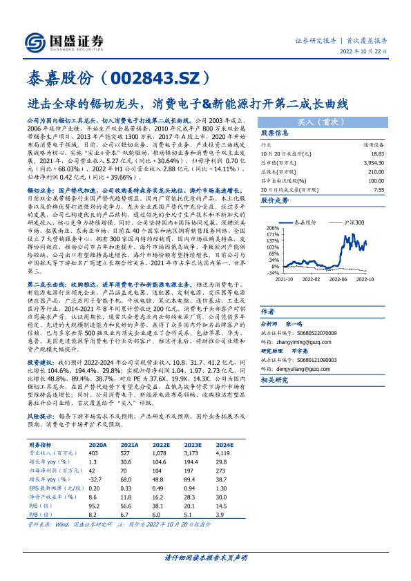 【国盛证券】【20221022】泰嘉股份-进击全球的锯切龙头,消费电子&新能源打开第二成长曲线-27页