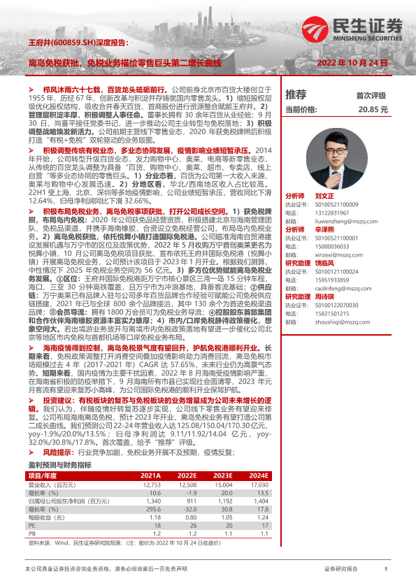 【民生证券】【20221024】20221024-民生证券-王府井-600859.SH-深度报告:离岛免税获批,免税业务描绘零售巨头第二增长曲线-42页