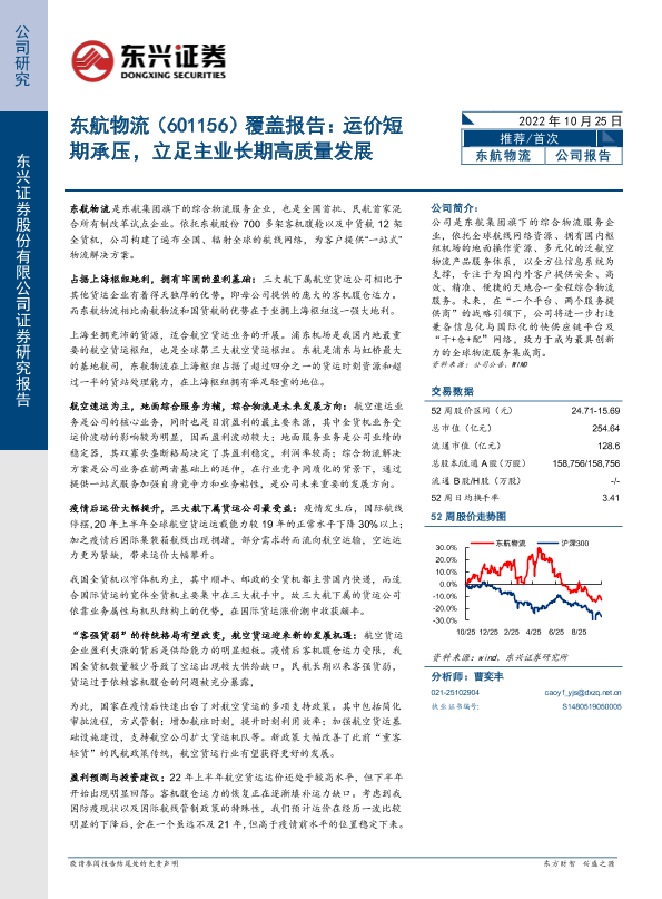 【东兴证券】【20221025】东航物流-601156.SH-覆盖报告:运价短期承压,立足主业长期高质量发展-26页