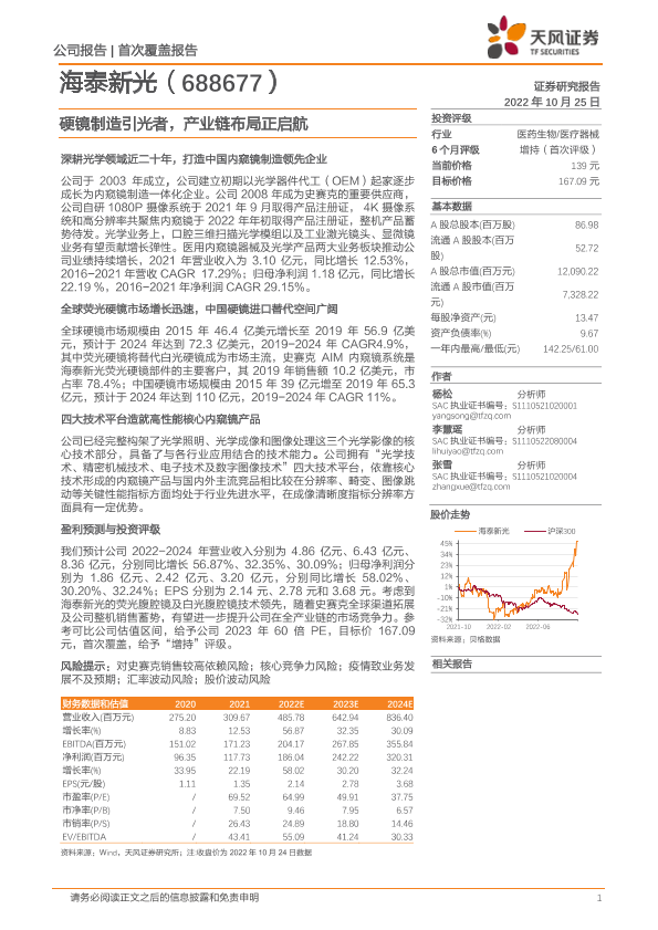 【天风证券】【20221025】海泰新光:硬镜制造引光者,产业链布局正启航-40页