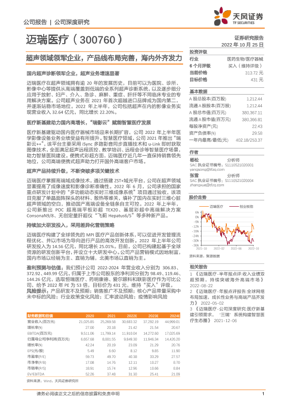【天风证券】【20221025】迈瑞医疗-300760.SZ-超声领域领军企业,产品线布局完善,海内外齐发力-26页