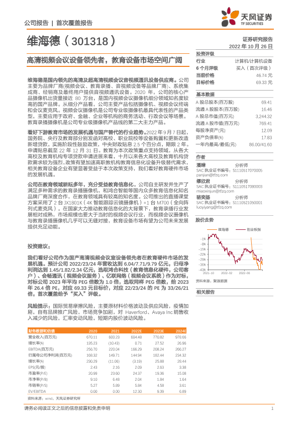 【天风证券】【20221026】20221026-天风证券-维海德-301318.SZ-高清视频会议设备领先者,教育设备市场空间广阔-25页