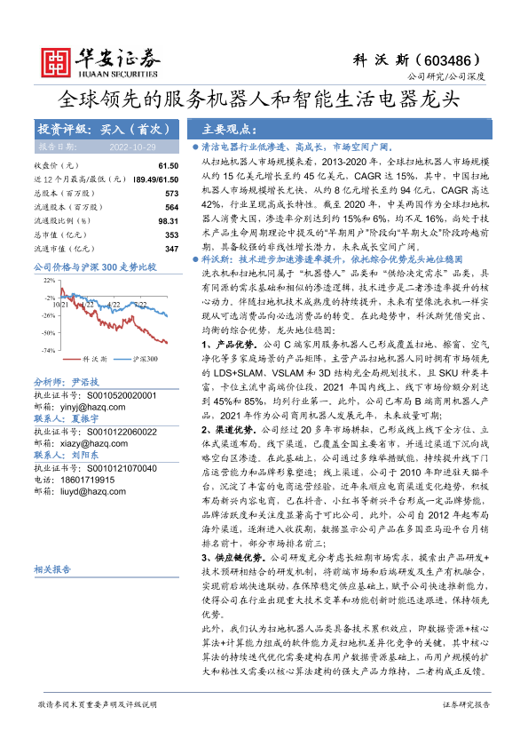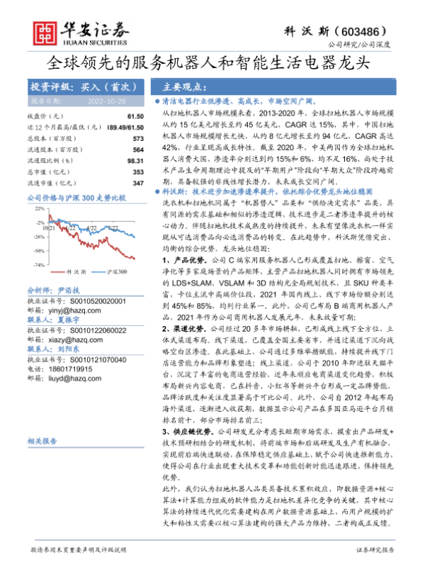 【华安证券】【20221029】全球领先的服务机器人和智能生活电器龙头-48页