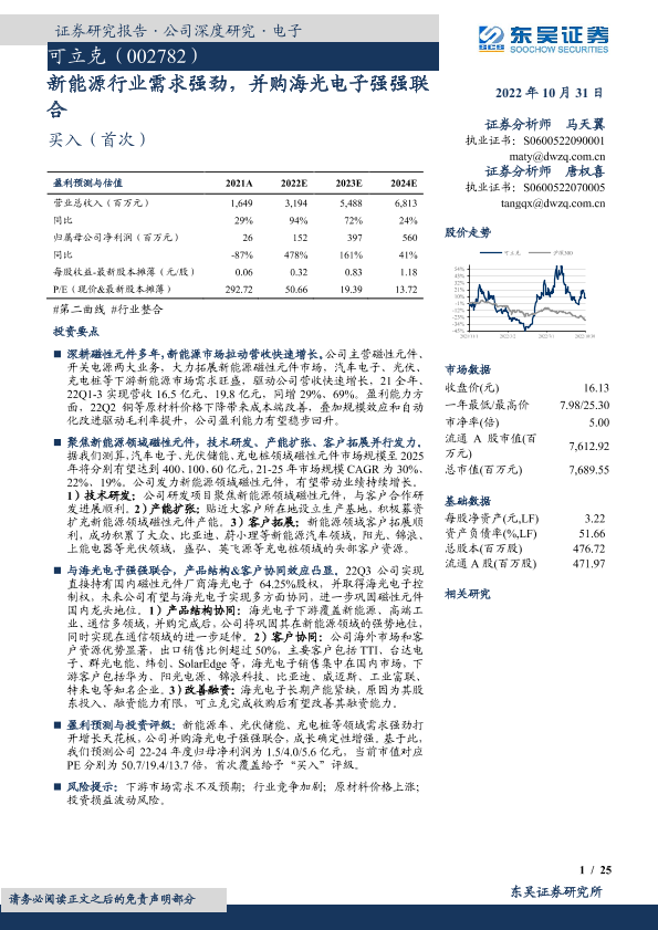 【东吴证券】【20221031】新能源行业需求强劲,并购海光电子强强联合-25页