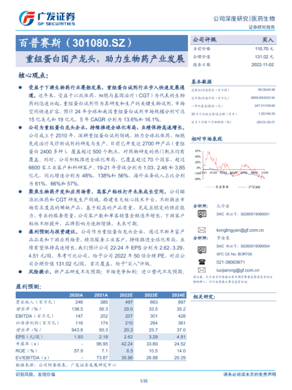 【广发证券】【20221102】百普赛斯(301080.SZ)重组蛋白国产龙头,助力生物药产业发展-35页
