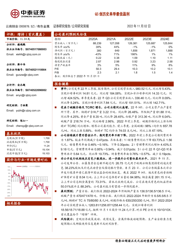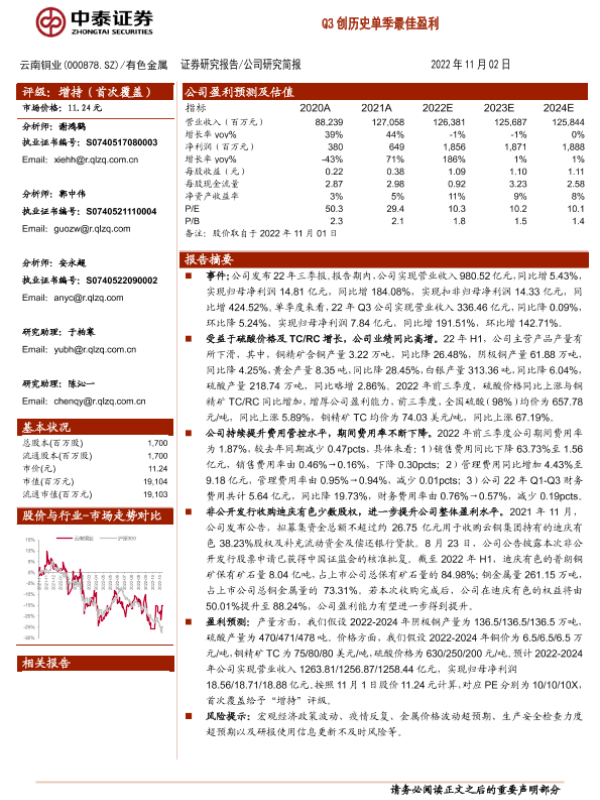 【中泰证券】【20221102】20221102-中泰证券-云南铜业-000878.SZ-Q3创历史单季最佳盈利-19页