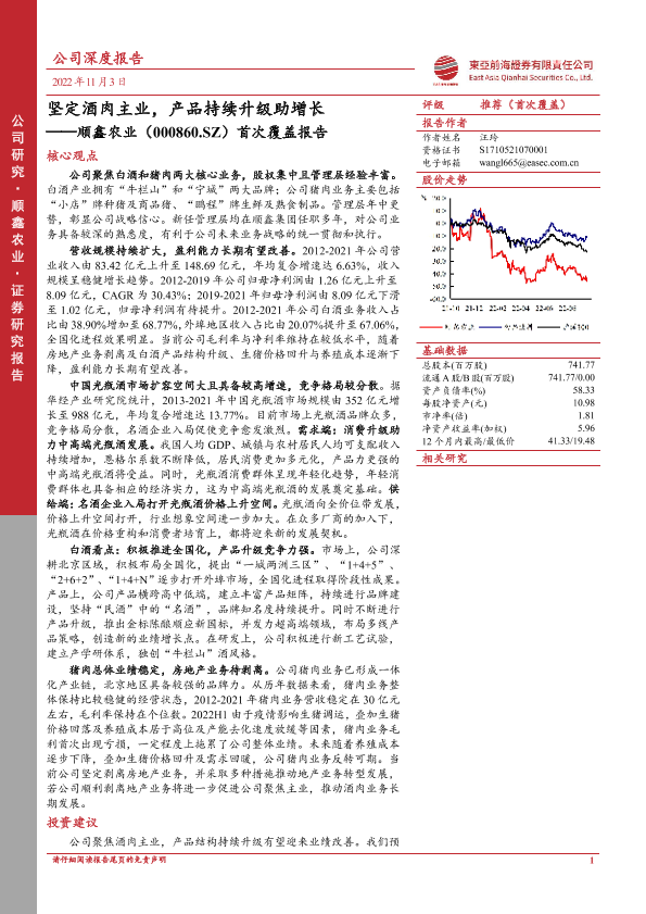 【东亚前海证券】【20221103】20221103-东亚前海证券-顺鑫农业-000860.SZ-首次覆盖报告:坚定酒肉主业,产品持续升级助增长-23页
