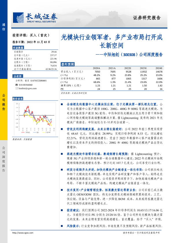 【长城证券】【20221103】中际旭创-300308.SZ-公司深度报告:光模块行业领军者,多产业布局打开成长新空间-29页