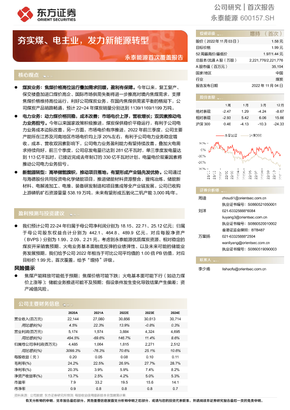 【东方证券】【20221104】永泰能源首次覆盖报告:夯实煤、电主业,发力新能源转型-30页