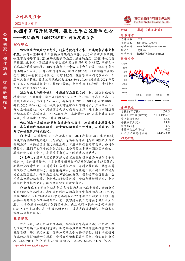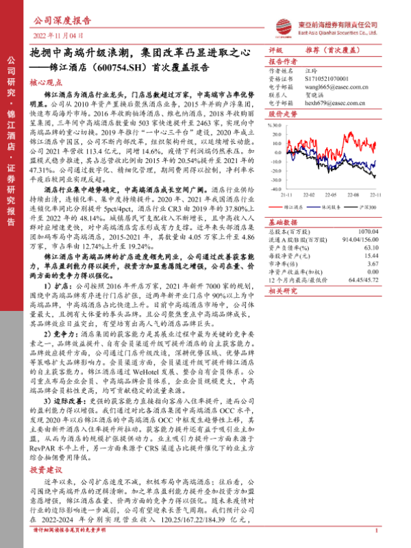 【东亚前海证券】【20221104】抱拥中高端升级浪潮,集团改革凸显进取之心——锦江酒店(600754.SH)首次覆盖报告-40页