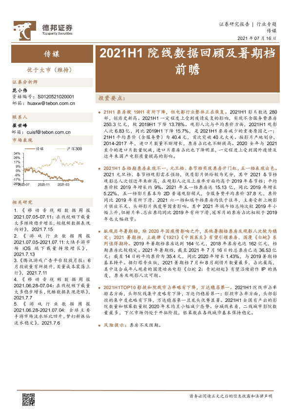 【德邦证券】【20210716】传媒行业:2021H1院线数据回顾及暑期档前瞻-15页