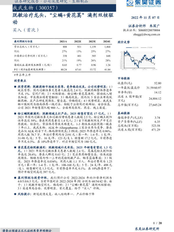 【东吴证券】【20221107】我武生物-300357.SZ-脱敏治疗龙头,“尘螨+黄花蒿”滴剂双核驱动-20页