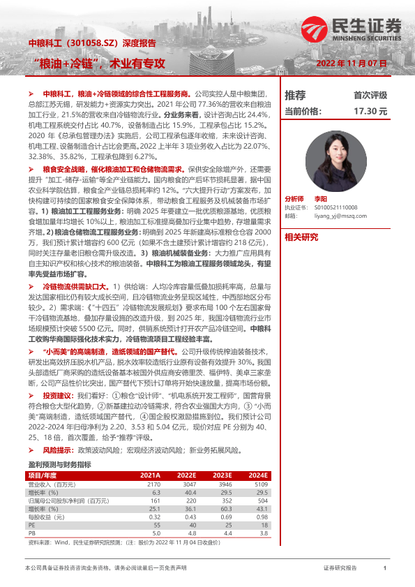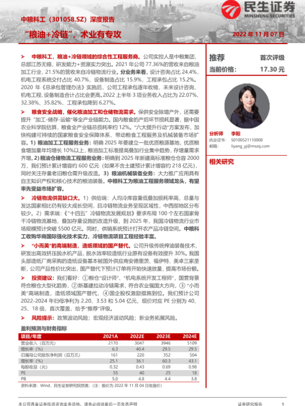 【民生证券】【20221107】中粮科工(301058.SZ)深度报告:“粮油+冷链”,术业有专攻-27页