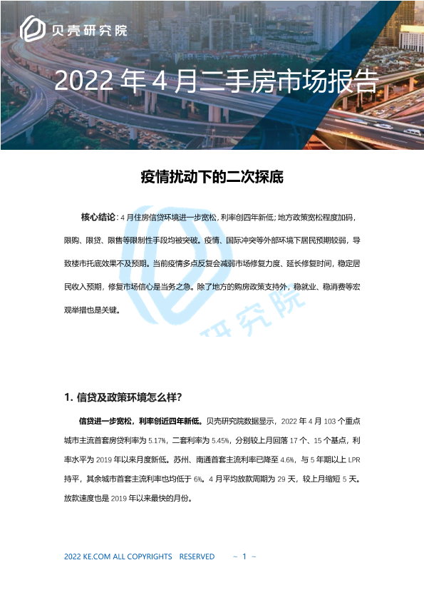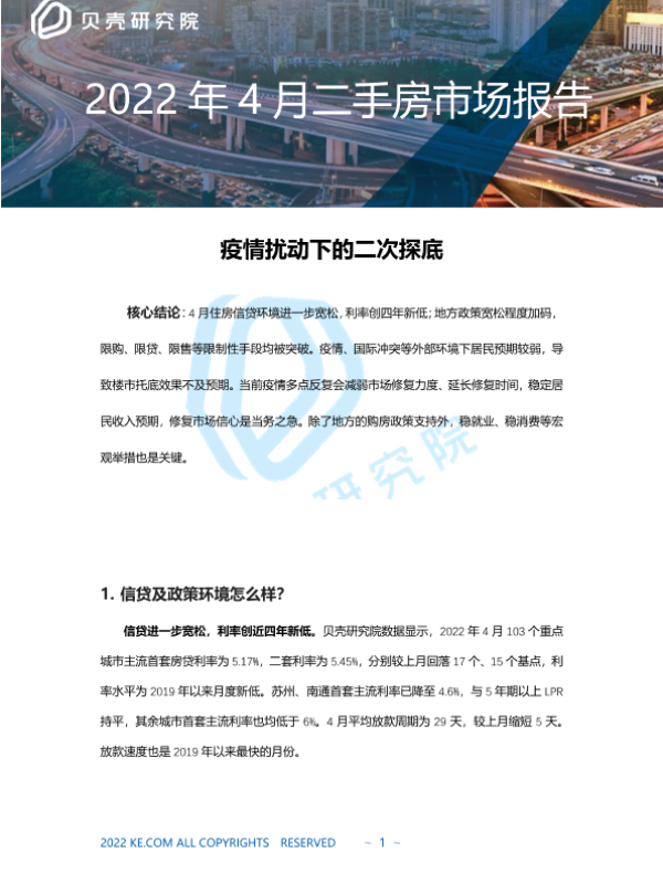 【贝壳研究院】【202204】贝壳研究院2022年4月二手房市场报告-8页