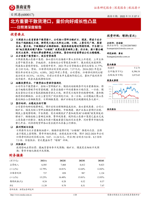 【浙商证券】【20221107】20221107-浙商证券-日照港-600017.SH-日照港深度报告:北方重要干散货港口,量价向好成长性凸显-28页
