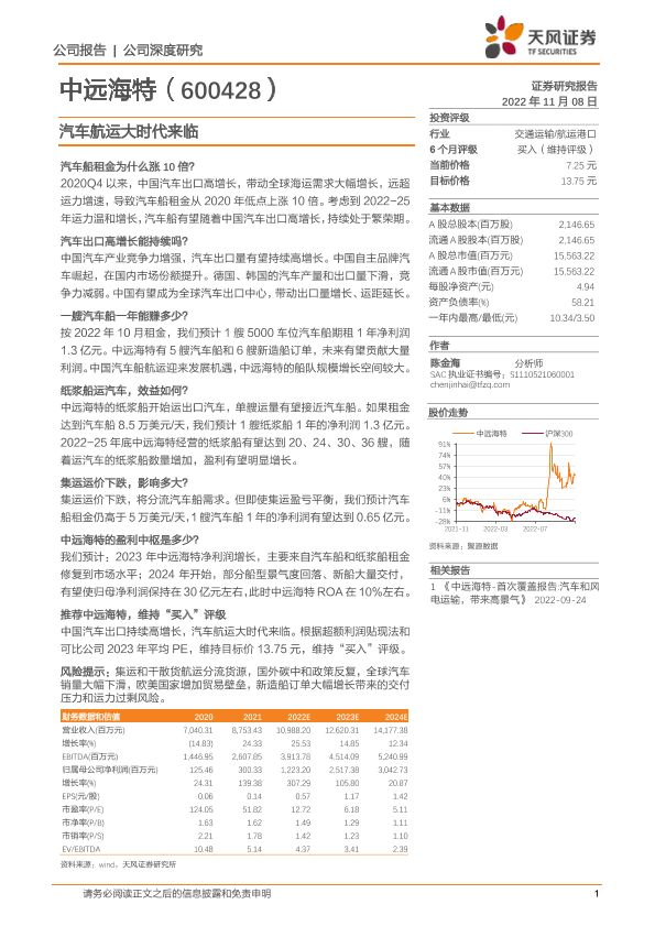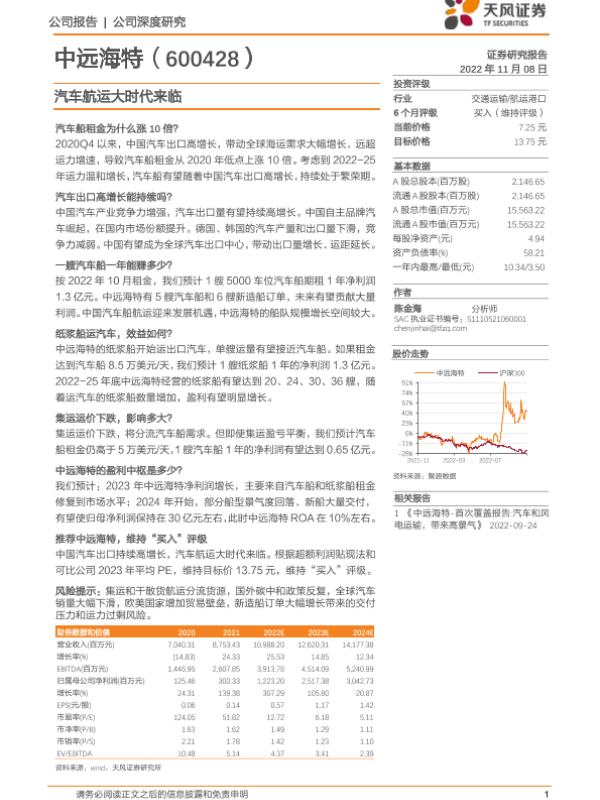 【天风证券】【20221108】中远海特-600428.SH-汽车航运大时代来临-16页