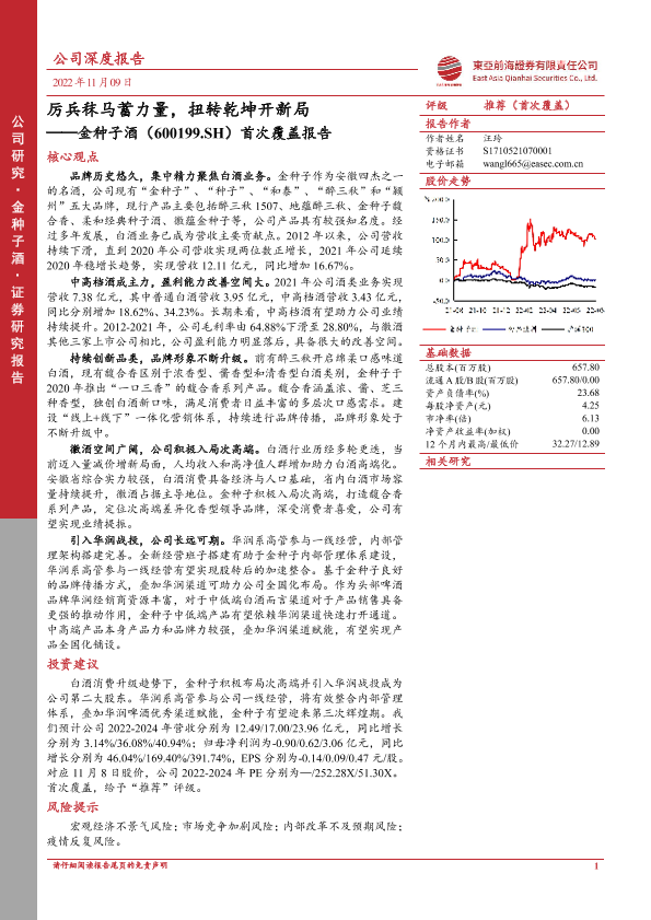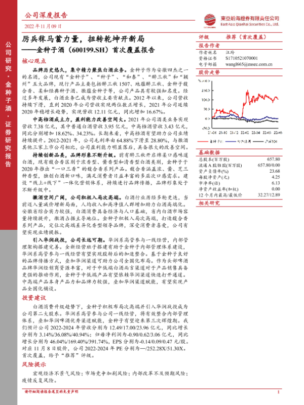 【东亚前海证券】【20221109】厉兵秣马蓄力量,扭转乾坤开新局——金种子酒(600199.SH)首次覆盖报告-22页