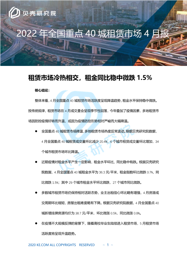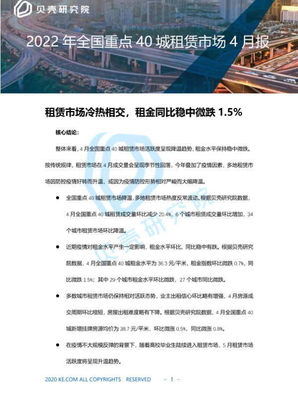 【贝壳研究院】【20220401】贝壳研究院2022年4月全国租赁报告-6页