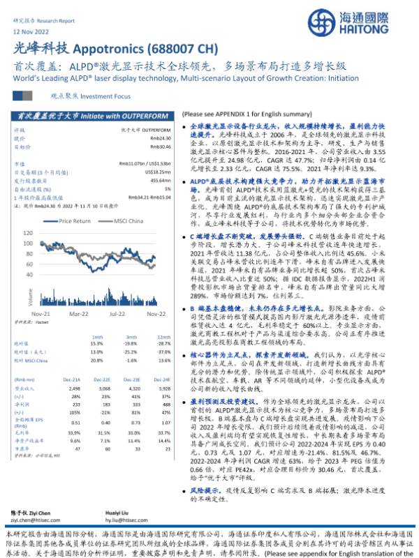 【海通国际】【20221112】20221112-海通国际-光峰科技-688007.SH-首次覆盖:ALPD®激光显示技术全球领先,多场景布局打造多增长级-26页