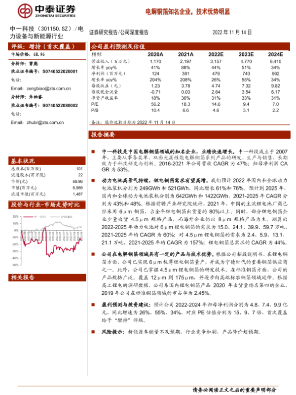 【中泰证券】【20221114】中一科技-301150.SZ-电解铜箔知名企业,技术优势明显-26页