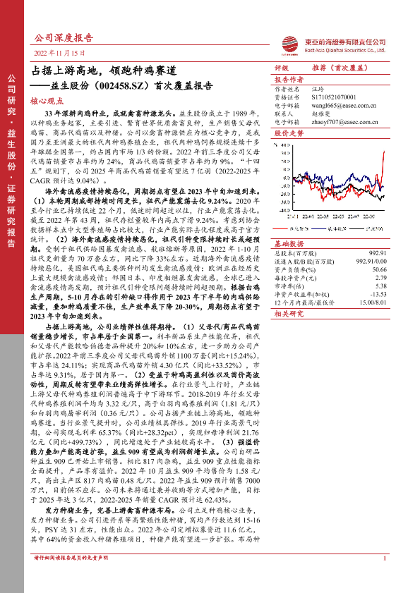 【东亚前海证券】【20221115】占据上游高地,领跑种鸡赛道——益生股份(002458.SZ)首次覆盖报告-37页