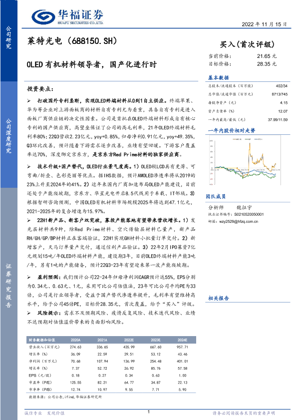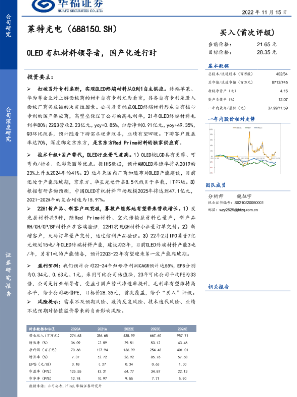 【华福证券】【20221115】莱特光电-OLED有机材料领导者,国产化进行时-27页