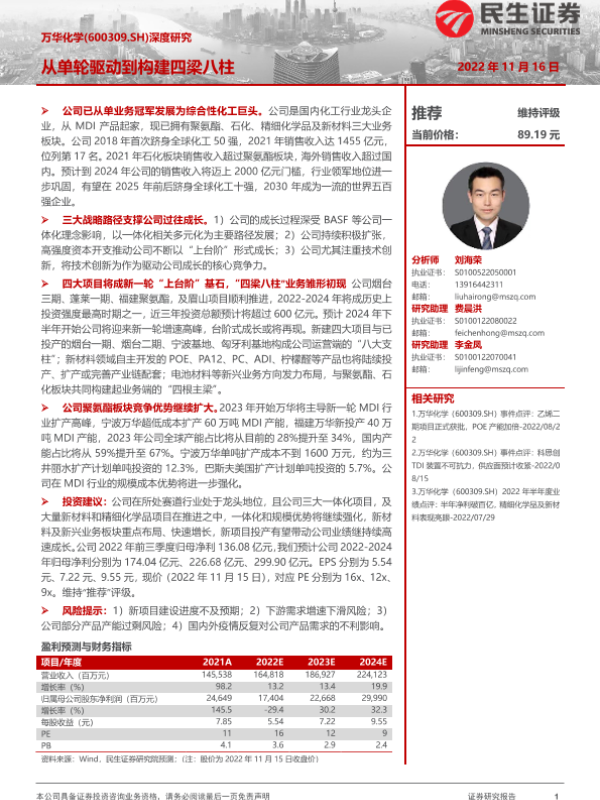 【民生证券】【20221116】万华化学(600309.SH)深度研究:从单轮驱动到构建四梁八柱-30页