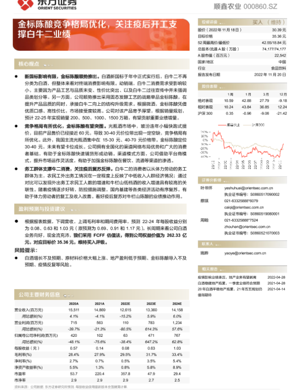 【东方证券】【20221120】顺鑫农业-000860.SZ-金标陈酿竞争格局优化,关注疫后开工支撑白牛二业绩-16页