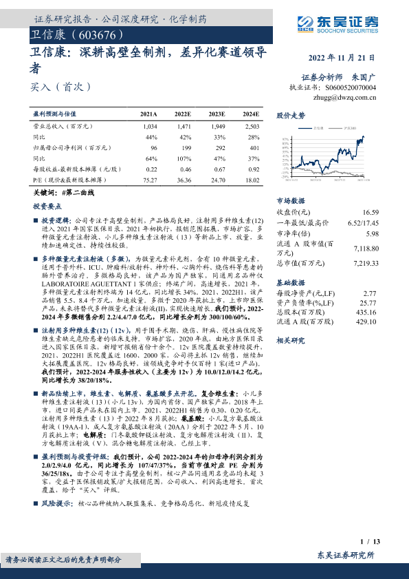 【东吴证券】【20221121】卫信康:深耕高壁垒制剂,差异化赛道领导者-13页