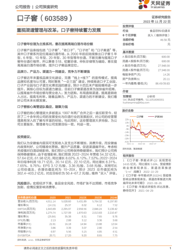 【天风证券】【20221122】重视渠道管理与改革,口子窖持续蓄力发展-27页