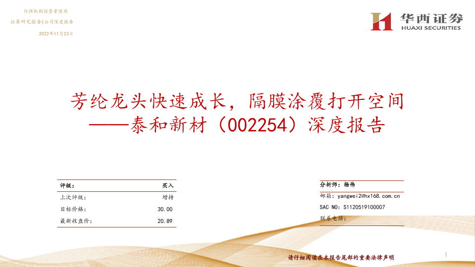 【华西证券】【20221123】芳纶龙头快速成长,隔膜涂覆打开空间——泰和新材(002254)深度报告-32页