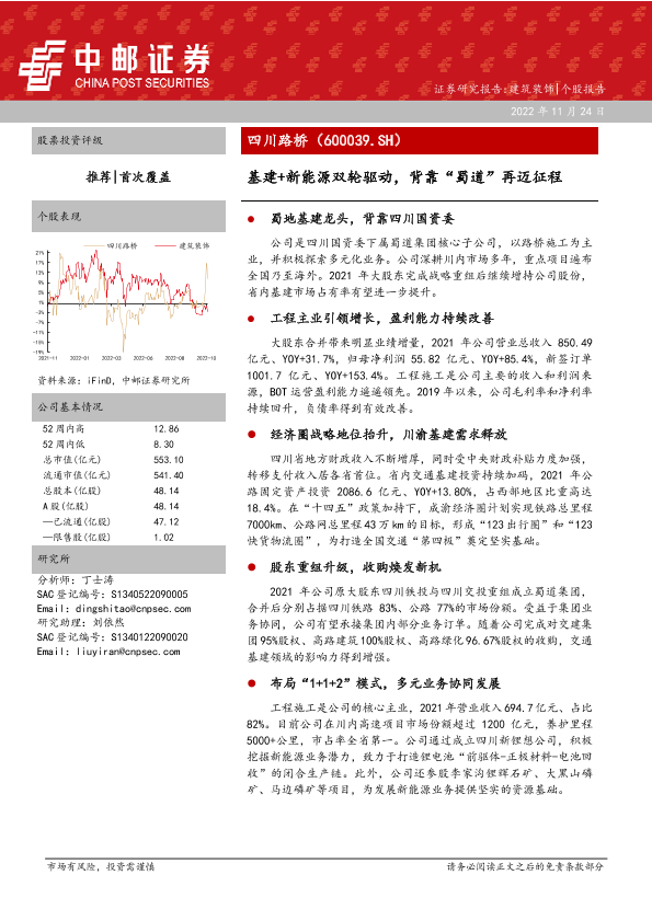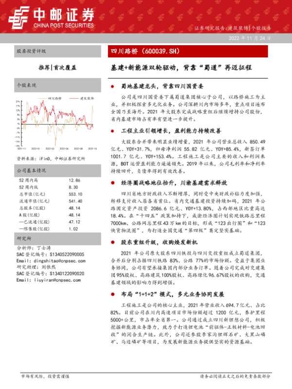 【中邮证券】【20221124】基建+新能源双轮驱动,背靠“蜀道”再迈征程-28页