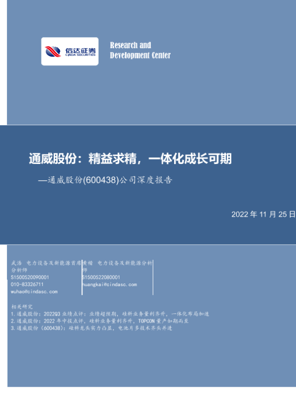 【信达证券】【20221125】通威股份:精益求精,一体化成长可期-36页