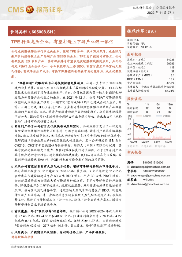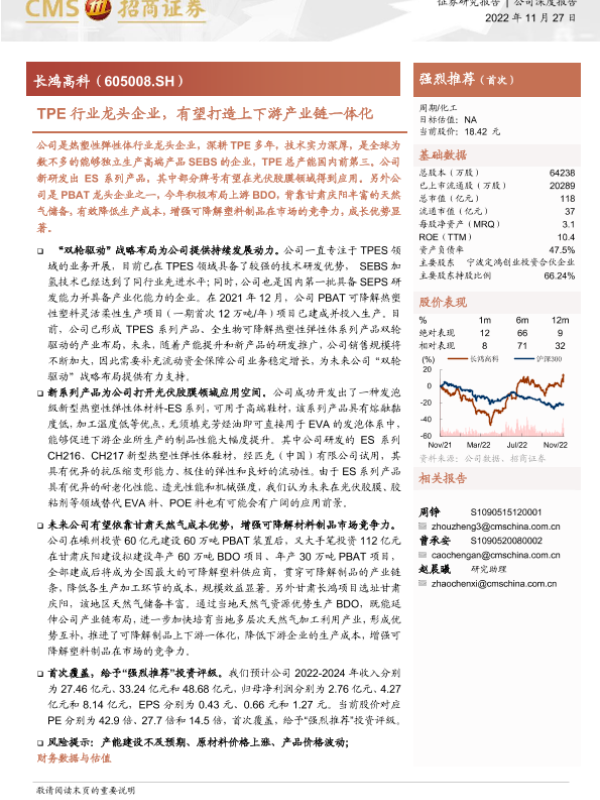【海通证券】【20221127】长鸿高科-605008.SH-TPE行业龙头企业,有望打造上下游产业链一体化-23页