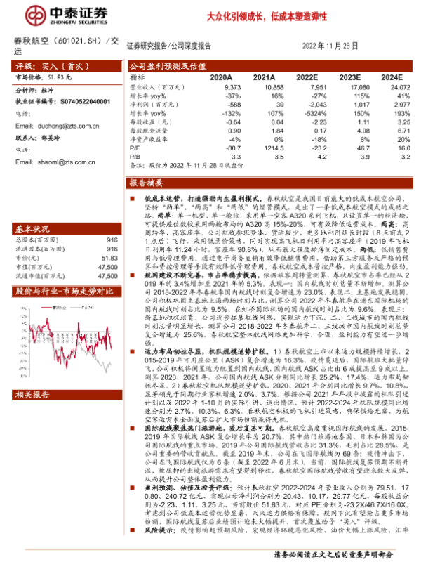 【中泰证券】【20221128】20221128-中泰证券-春秋航空-601021.SH-大众化引领成长,低成本塑造弹性-37页